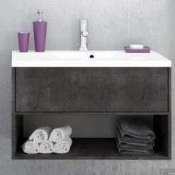 Onderkast Allibert Marny 80×53,5×47,2 Cm Met Lade En Nis Donker Beton (wastafel Optioneel)