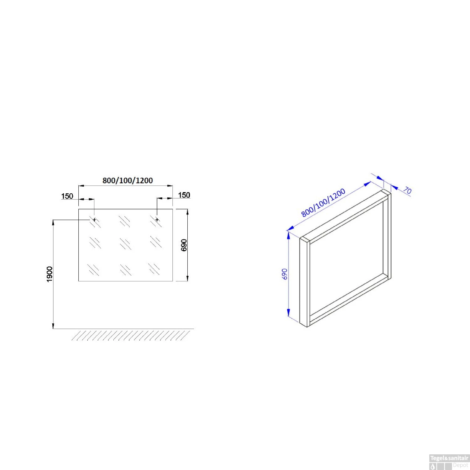Specificaties Allibert Spiegel Sorento 80 cm Eiken Cognac