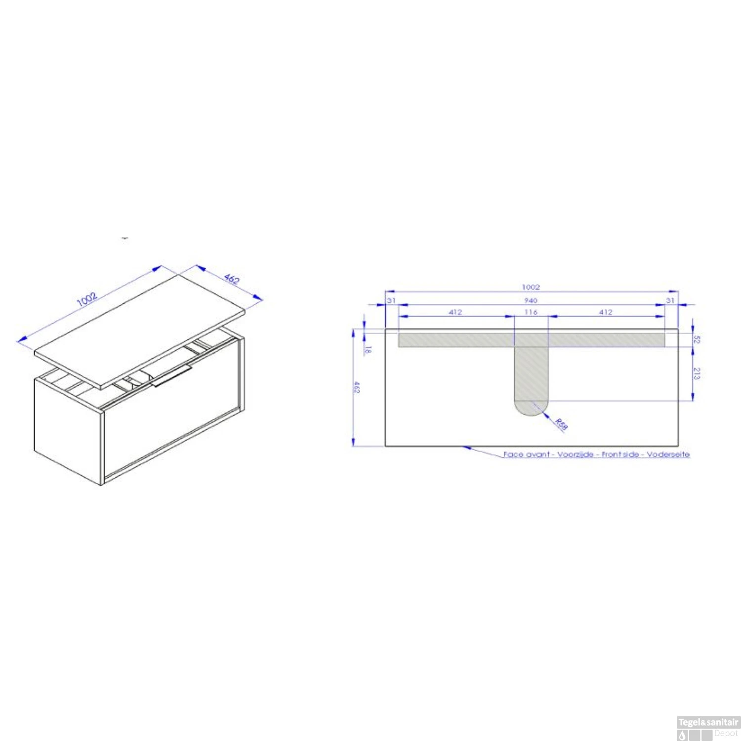 Specificaties Allibert Wastafelonderblad Sorento 100 cm Eik Halifax
