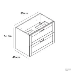 De Cambridge wastafelonderkast is van het bekende merk Allibert. De cambridge is een disign Wastafelonderkast en past goed bij een industriële badkamerruimte. De kast heeft twee ruime lades met veel ruimte voor al uw badkamerspullen. De lades hebben zwarte metalen handgrepen, waarmee de lades eenvoudig zijn te bedienen. Daarnaast beschikken de lades over een Soft Close systeem, waarmee u een harde klap kunt voorkomen en de lades geruisloos en met beleid terug op hun plek vallen. Het badkamermeubel heeft een enkele sifon uitsparing. De kast heeft een breedte van 80 cm, een breedte van 46 cm en een hoogte van 58 cm.