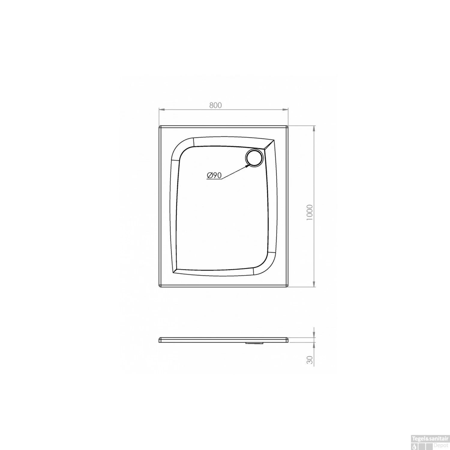 De rechthoekige douchebak heeft een breedte van 100 cm, een diepte van 80 cm en een hoogte van 3 cm. Onderaan de webpagina kunt u ervoor kiezen om een bijpassende douchebakafvoer van het merk Allibert aan de bestelling toe te voegen. Deze douchebakafvoeren zijn leverbaar in een chrome, witte en extra platte variant voor een meerprijs.