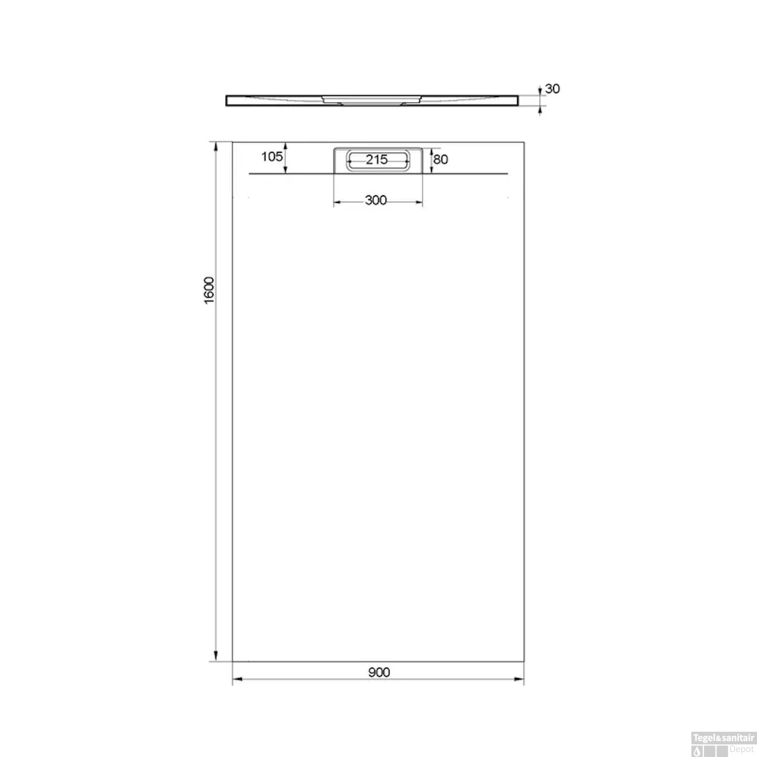- Afmetingen afvoergat: 215x300x80 mm