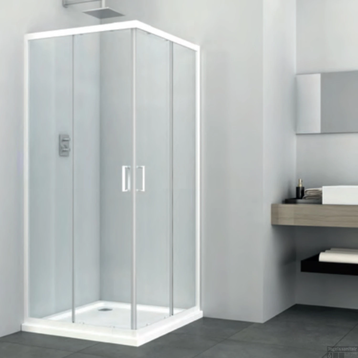 Deze douchecabine van Allibert komt uit de serie Happy. Hij is gemaakt van aluminium met een witte kleur. Het glas waarvan de deuren gemaakt zijn is 4 mm dik en dit is transparant glas met een easy clean bewerking. De cabine heeft een hoekinstap omdat de deuren naar buiten draaien. De cabine wordt geleverd zonder douchebak en garnituur.