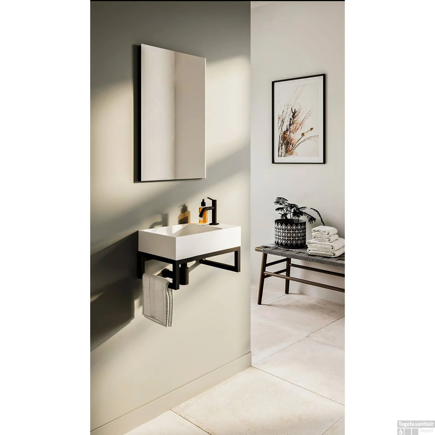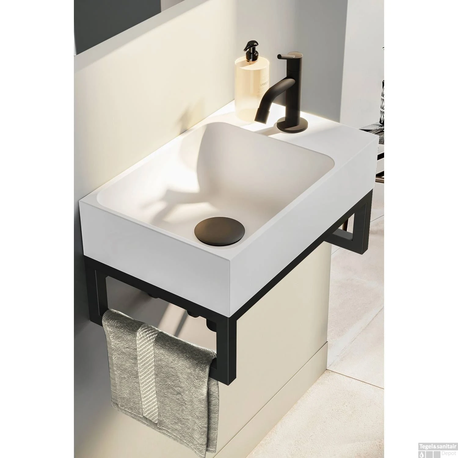 Let op: dit artikel wordt geleverd zonder kraan, of sifon. Dus het betreft alleen de wastafel en het handdoekenrek.