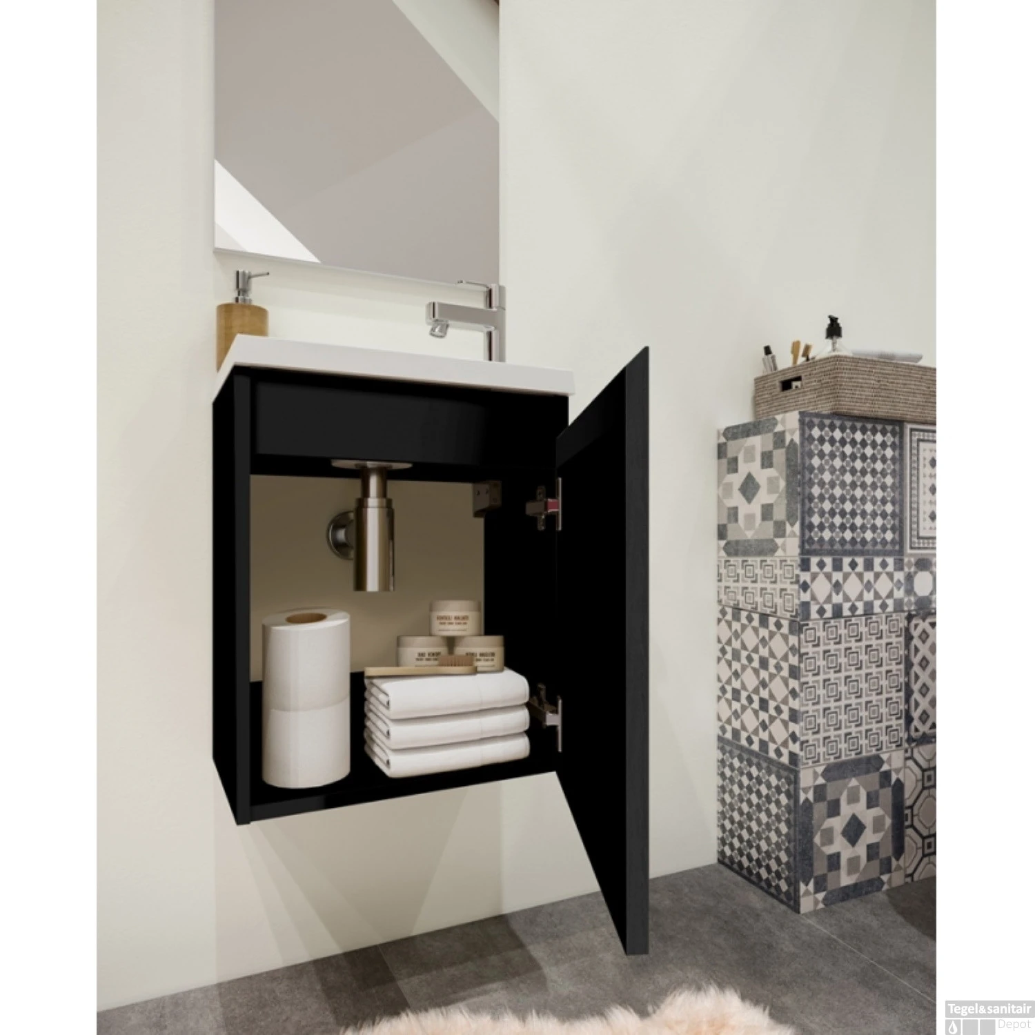 Specificaties Fonteinset Allibert Porto Pack 40 Inclusief Spiegel Soft Close 40x51x25 cm Glanzend Zwart