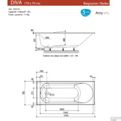 Met de Hoekbad Allibert Diva 160×90 cm Asymmetrisch Links geeft u uw badkamer de finisching touch. Met zijn asymmetrische vorm geeft hij uw badkamer een unieke look. Het bad is 160 cm lang en op zijn breedst is hij 90 cm. Bad is 40 cm diep.
