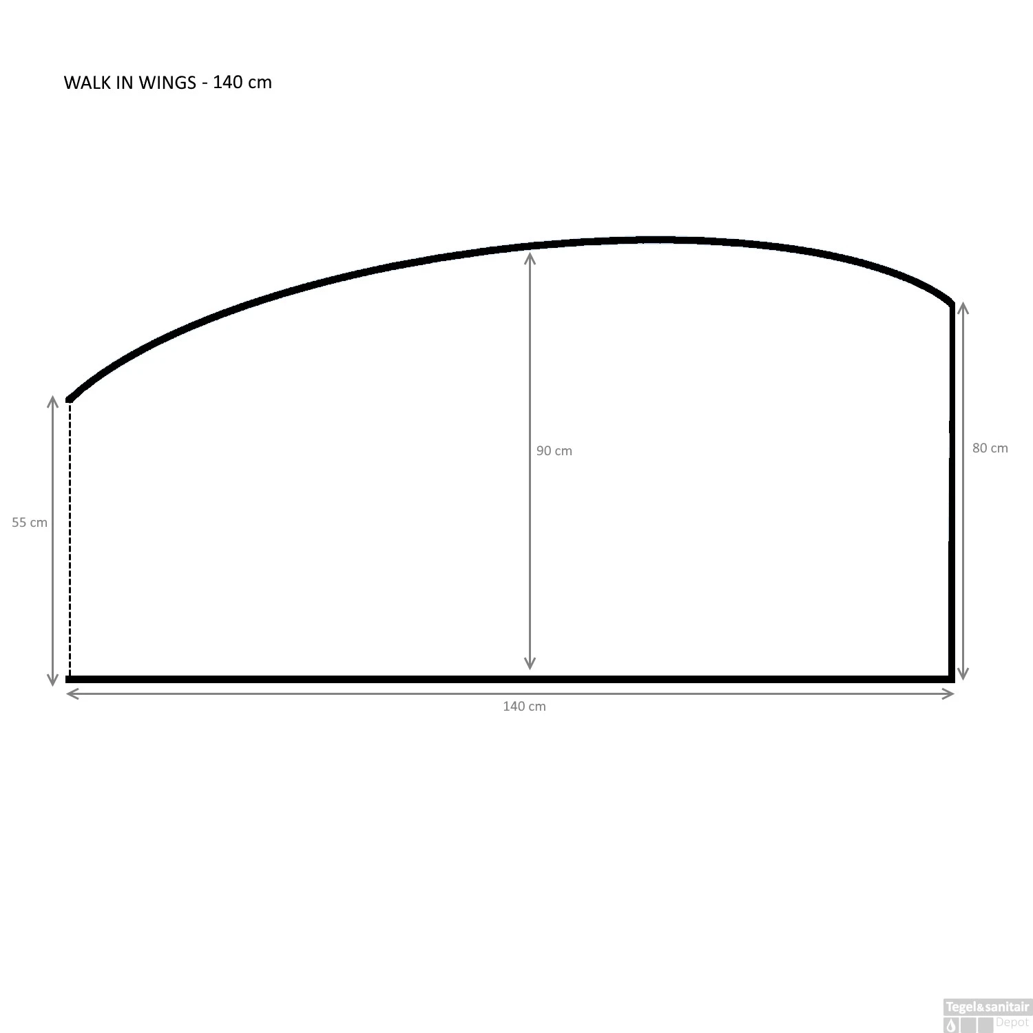 De Wings is geen standaard rechte douchewand maar een gebogen inloopdouche. U bespaard met de Walk-In Wings inloopdouche ruimte en warmte in de doucheruimte. Door de gebogen vorm en smalle opening van 55m blijft er meer warmte in de cabine hangen.
