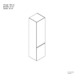 De afmetingen van deze kolomkast zijn: 40 cm breed, 156 cm hoog en 35 cm diep. Deze kolomkast wordt gemonteerd geleverd en hoeft dus niet meer in elkaar gezet te worden.