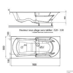 Specificaties Ligbad Allibert Moovance Rechthoek Toplax Duobad Wit 180×80 cm