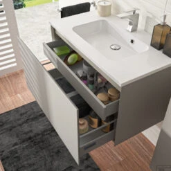 De Nordik onderkast is een fraaie kast van het merk Allibert en een uitstekende toevoeging in de badkamer. De onderkast is gemaakt van gelakt MDF en afgewerkt in een mat grijze kleur. De kast heeft een breedte van 100 cm, een diepte van 46 cm en een hoogte van 47,2 cm en dient aan de muur bevestigd te worden.