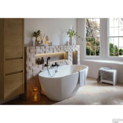Bij dit vrijstaande bad is er een mogelijkheid om een kraan in de badrand te plaatsen.