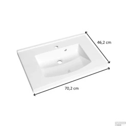 De Flex wastafel is van het merk Allibert. De wastafel is gemaakt van polybeton en is afgewerkt in een mooie, glanzend witte kleur. Het artikel heeft een breedte van 70,2 cm, een diepte van 46,2 cm en een hoogte van slechts 4 cm. De wastafel is uitermate geschikt om te plaatsen op een onderkast, zodoende heeft u de mogelijkheid om een fraai badmeubel te creëren. Onderaan de webpagina heeft u de keuze uit diverse bijpassende onderkasten om aan uw bestelling toe te voegen.
