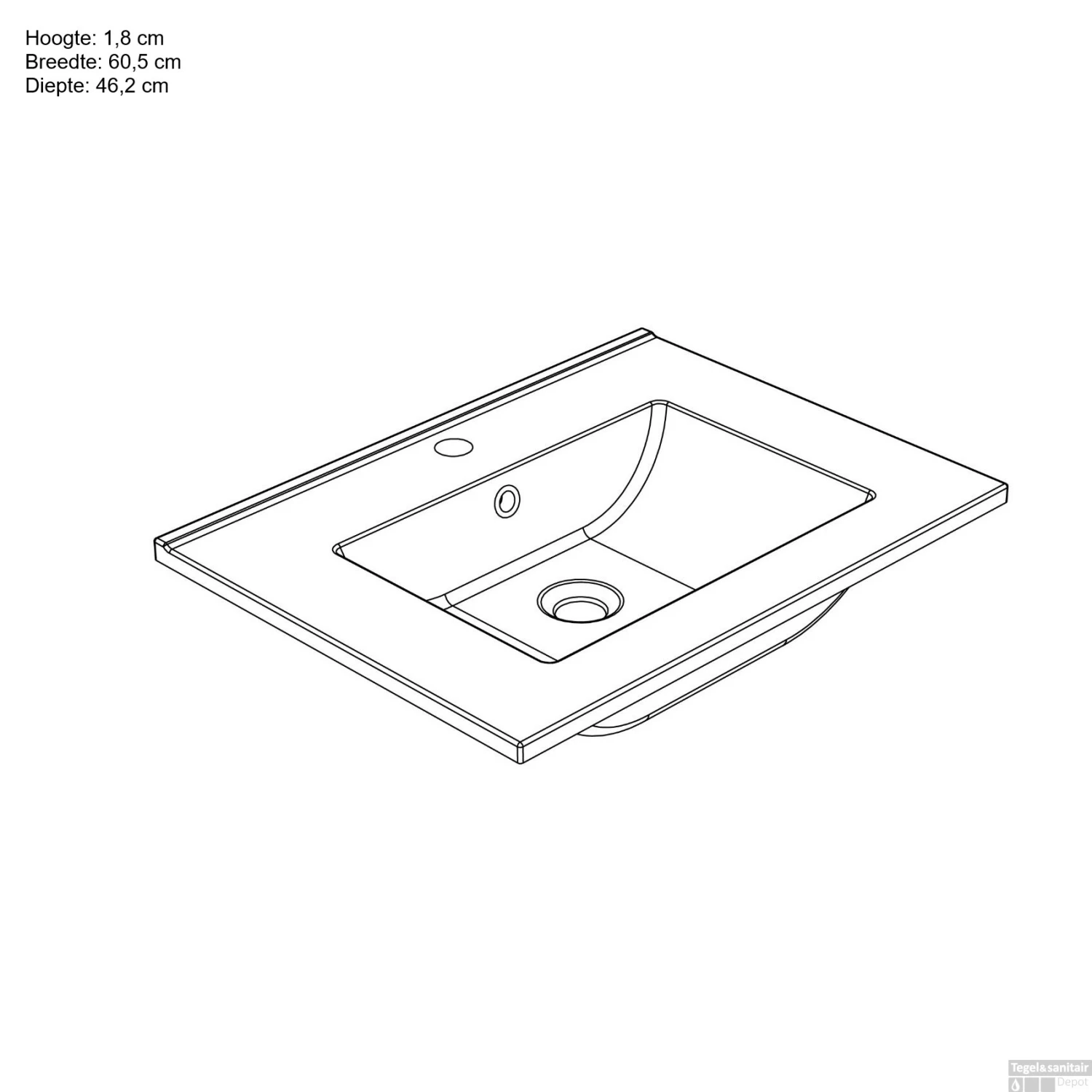 Deze wastafel heeft de afmetingen; 60,5 cm breed, 46,2 cm diep en 1,8 cm hoog. Hij is makkelijk schoon te maken door het materiaal waarvan hij gemaakt is. Het enige wat u hoeft te doen is met een vochtige doek er overheen te vegen om deze wastafel te reinigen.