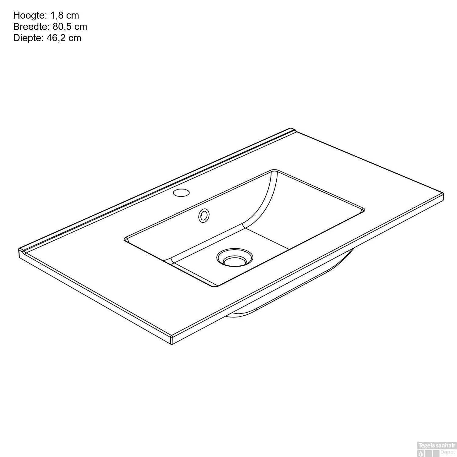 Deze wastafel heeft de afmetingen; 80,5 cm breed, 46,2 cm diep en 1,8 cm hoog. Hij is makkelijk schoon te maken door het materiaal waarvan hij gemaakt is. Het enige wat u hoeft te doen is met een vochtige doek er overheen te vegen om deze wastafel te reinigen.
