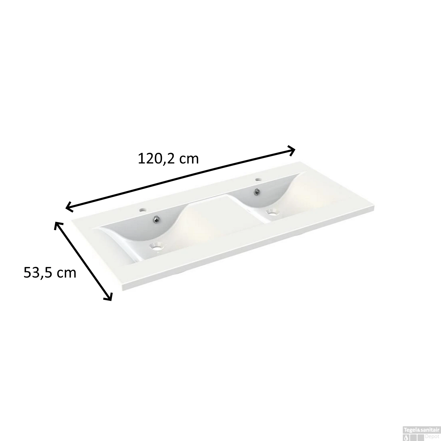 De Wave wastafel beschikt over twee wasbakken die beiden zijn voorzien een kraangat. De wasbakken zijn bovendien uitgerust met een overloop. De overloop zorgen ervoor dat de wasbakken niet zullen overstromen. Om de set compleet te maken dient u nog zelf een wastafelkraan, afvoer en sifon aan te schaffen.