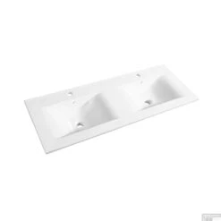 De ‘Soft’ inbouw wastafel is van het populaire merk Allibert. De dubbele wastafel met twee wasbakken is gemaakt van porselein en afgewerkt in een hoogglans witte kleur. Tevens is deze wastafel voorzien van twee kraangaten en twee overlopen in het midden van de wasbakken. De overlopen zorgen ervoor dat de wasbakken niet overstromen wanneer de kraan te lang aan staat bij gebruik. De Soft wastafel heeft een breedte van 120,5 cm, een diepte van 46,5 cm en een hoogte van slechts 1,7 cm. De wastafel valt uitstekend te combineren met een bijpassende onderkast.