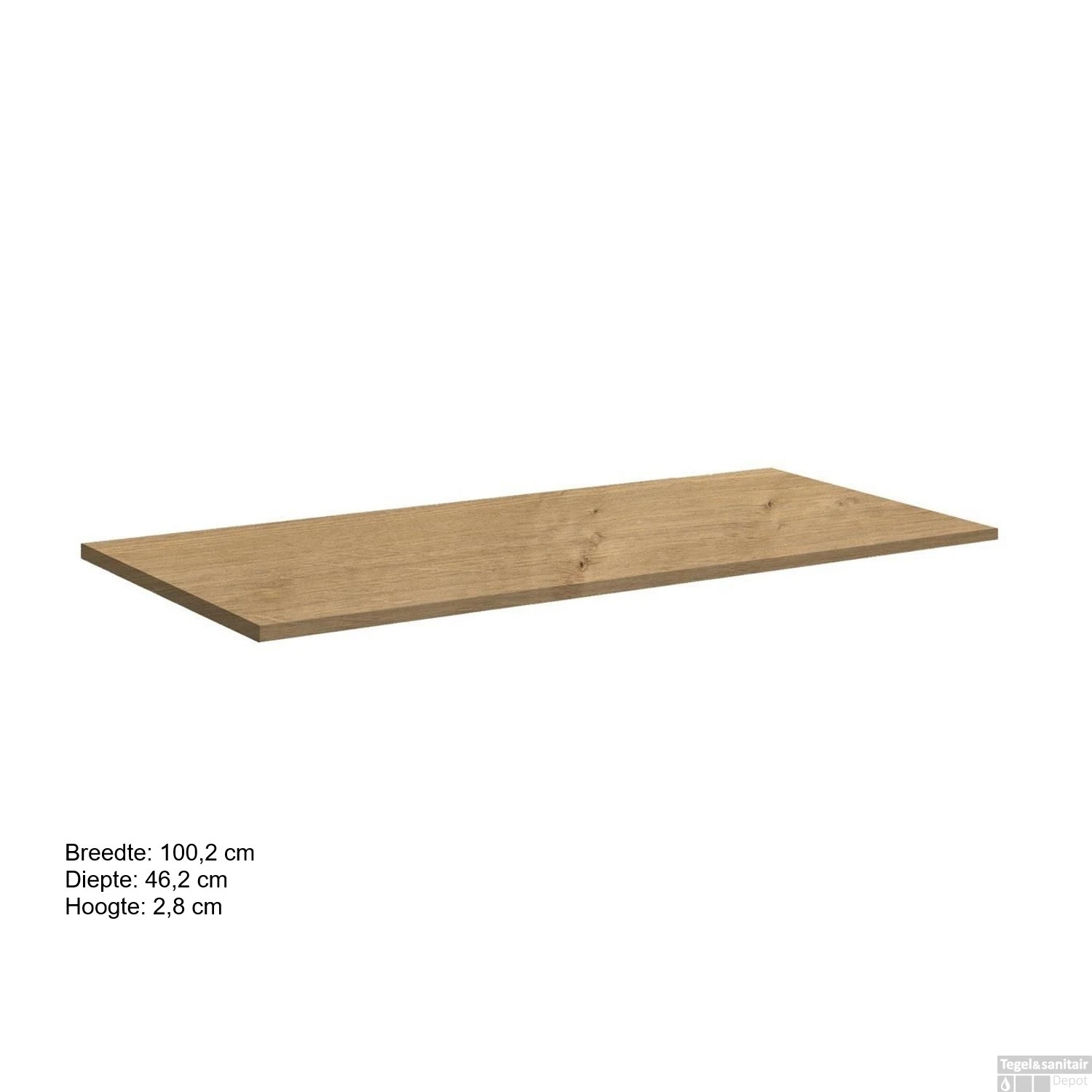 Het blad is uitstekend geschikt voor plaatsing op een bijpassende onderkast en kent een breedte van 100,2 cm, een diepte van 46,2 cm en een hoogte van 2,8 cm. Het wastafelblad is uitermate geschikt voor plaatsing van één of twee waskommen op het blad. Het wastafelblad is uitgerust zonder kraangaten.