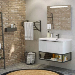 Deze hangende wastafelonderbouw uit de Fabrika collectie van Allibert geeft een unieke touch aan uw badkamer. De mix van materialen geeft een industriële sfeer. De onderkast is voorzien van een ruime lade die is voorzien van soft close scharnieren voor een zachte en geruisloze sluiting. Daaronder bevat de kast een nis over de gehele breedte, leuk te gebruiken voor decoratie of handig om bijvoorbeeld uw handdoeken op te leggen.