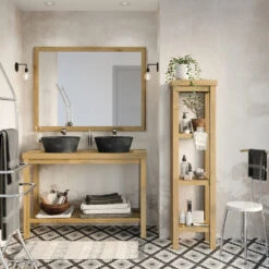 Met de Prisca lijn van Allibert geeft u uw badkamer karakter! Dit meubel heeft een vintage en chique uitstraling dankzij het natuurlijke Acacia hout. De kast is een staand model en heeft een open uiterlijk. Het meubel bied extra opbergruimte dankzij de plank onderin. Combineer het meubel met een waskom of opbouw wastafel naar keuze.