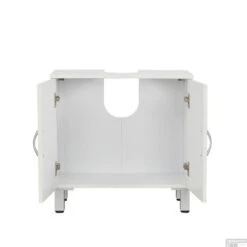 De wastafelonderbouw uit de Solita-serie geeft meer ruimte op een eenvoudige en efficiënte manier. De onderbouw heeft een witte kleur in een matte uitvoering en is voorzien van twee deuren. Deze staande kast heeft een kraan gat in het midden en wordt aan de wand bevestigd. Het meubel is gemakkelijk zelf te monteren.
