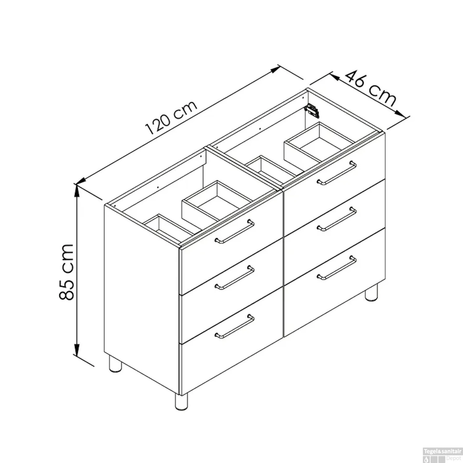 Deze wastafelonderkast van Allibert uit de serie Kobo brengt een neutrale kast met een nette afwerking, maar toch ook met een ontdeugend goud tintje. Deze kast is voorzien van 3 lades van ieder een diepte van 46 cm. Dit is ideaal voor als u uw belangrijkste badkamerproducten dicht bij de hand wil hebben, maar toch ook een opgeruimde badkamer wil behouden. De breedte van deze kast is verdeeld in 2 onderkasten van 60 cm.