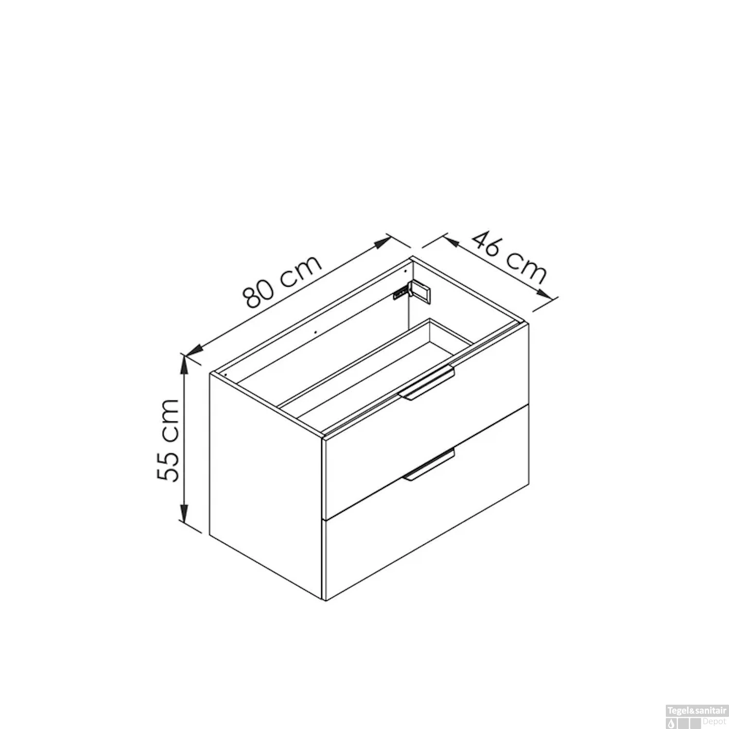 De lades bevatten soft close dit houdt in dat de deuren zodra ze sluiten, niet dichtklappen, maar vanzelf rustig sluiten. De afmetingen van deze wastafelonderkast zijn: 55 cm hoog, 46 cm diep en 80 cm breed.