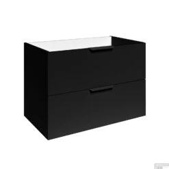 Met deze wastafelonderkast van Allibert uit de serie Play, heeft u een hele ruimtebesparende en net afgewerkte wastafelonderkast in uw badkamer. Met deze mat zwarte kleur heeft deze kast het voordeel dat hij al heel snel in uw badkamer past. Deze kast heeft 2 lades met elk een handgreep en mat zwarte kleur. Aan de binnenkant van deze kast heeft u een diepte van 46 cm. Deze diepte is ideaal voor als u uw belangrijkste badkamerartikelen bij de hand wil hebben en toch een opgeruimde badkamer wilt behouden. Ook bevat deze wastafelonderkast een sifonuitsparing.