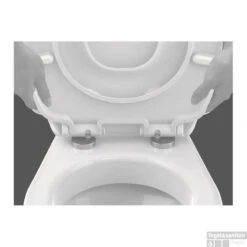 De wc-zitting is vervaardigd van thermosplastiek voor een zeer lange levensduur. Past op alle standaard toiletten. Toilet is makkelijk te reinigen door afklikbare RVS scharnieren.